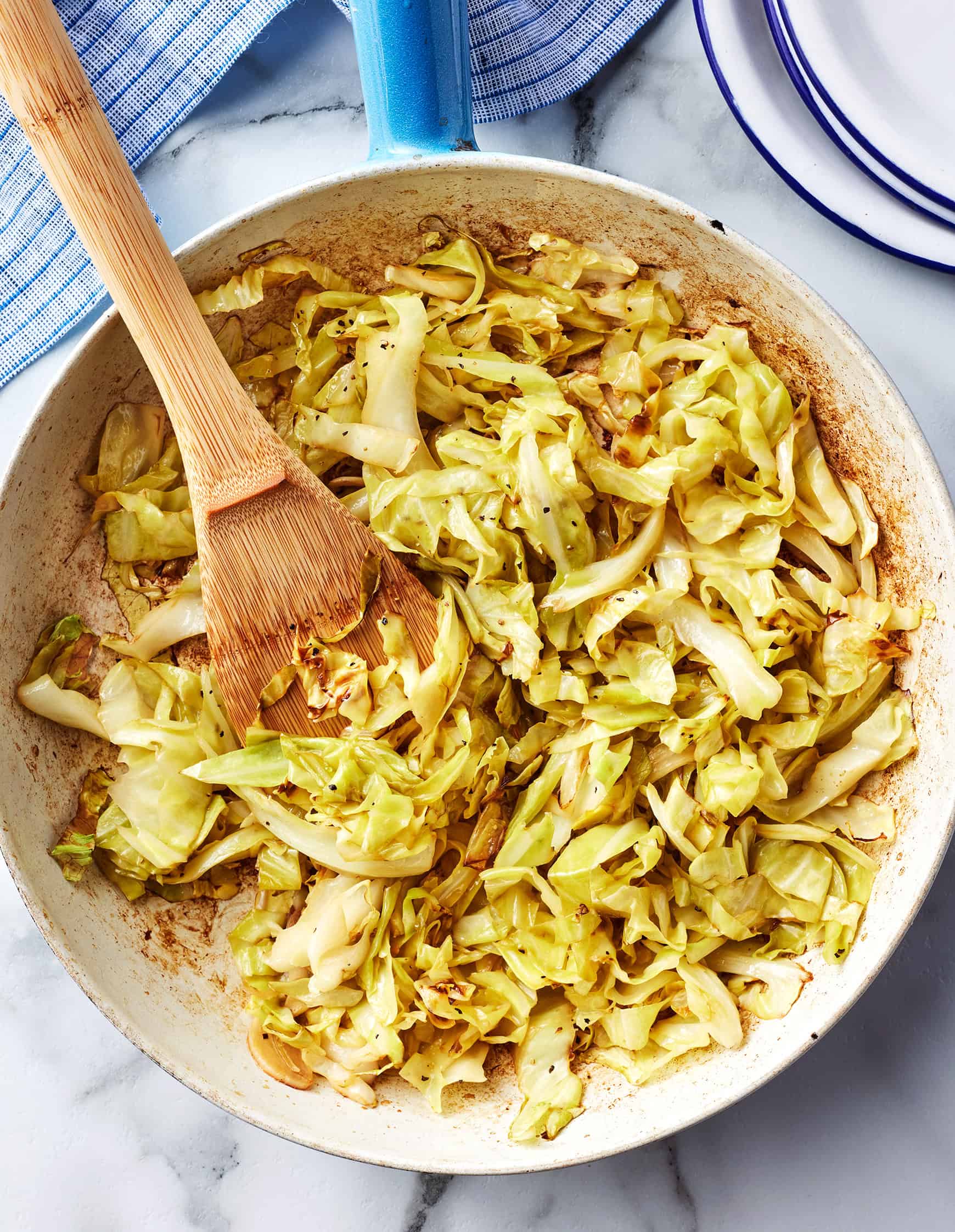 This sautéed cabbage recipe is a delicious, easy vegetable side dish! Cooked with garlic and vinegar, it's tender, caramelized, and deeply flavorful.